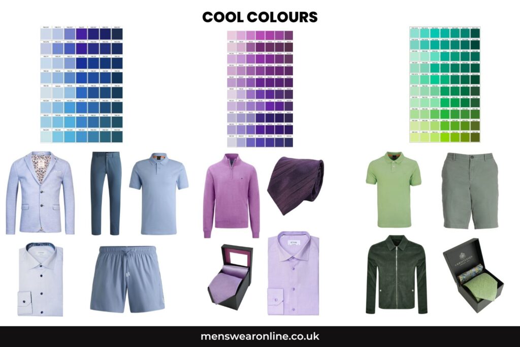 Cool colours, such as blue, green, and purple, convey calmness and professionalism. BOSS and CANALI often use these tones in their collections, which are ideal for more formal industries like finance or law. These colours can help establish a trustworthy and dependable image.