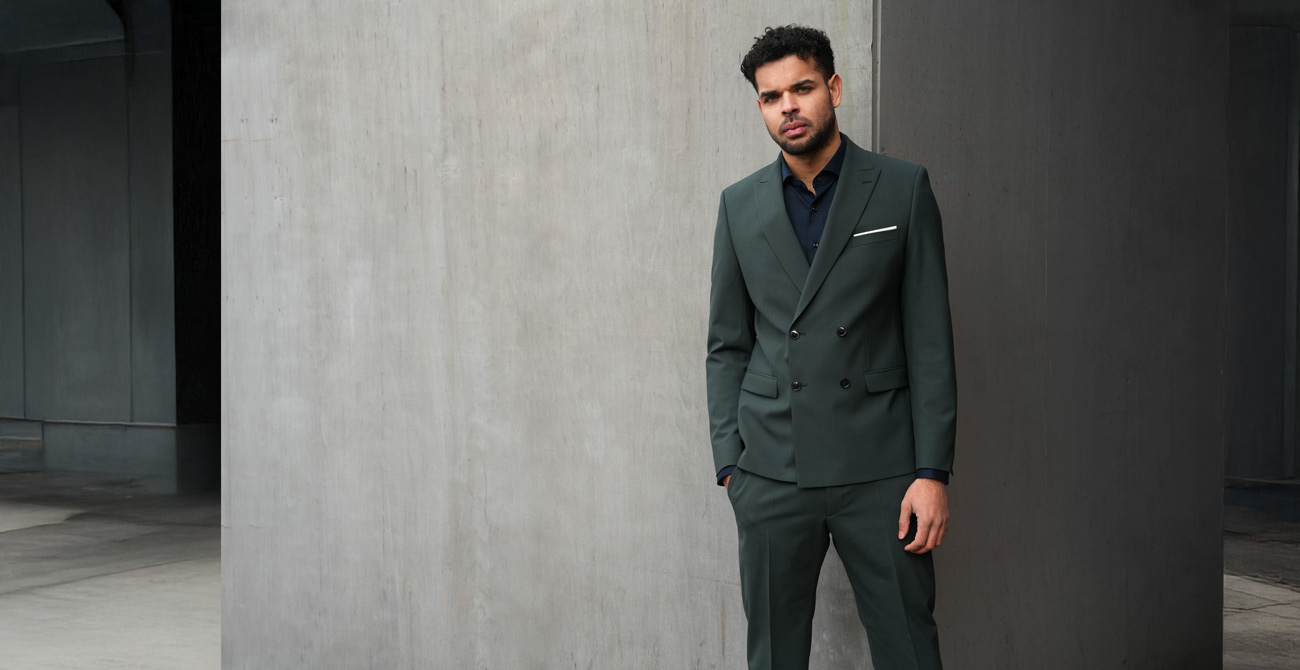 If you’re aiming for a head-turning, refined look, a double-breasted forest green suit is a perfect choice.