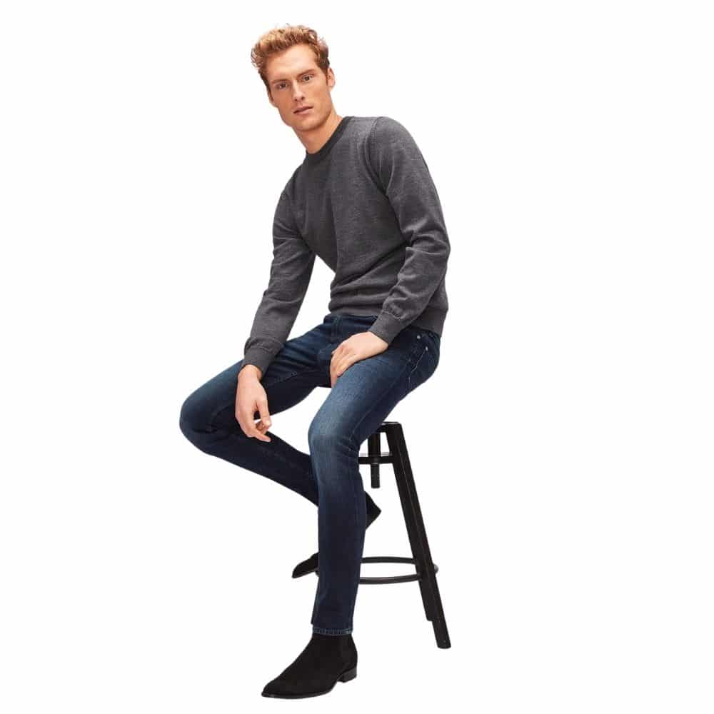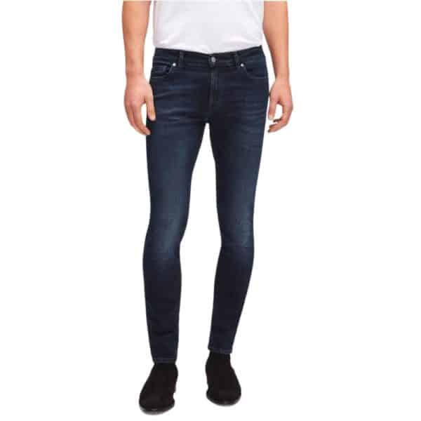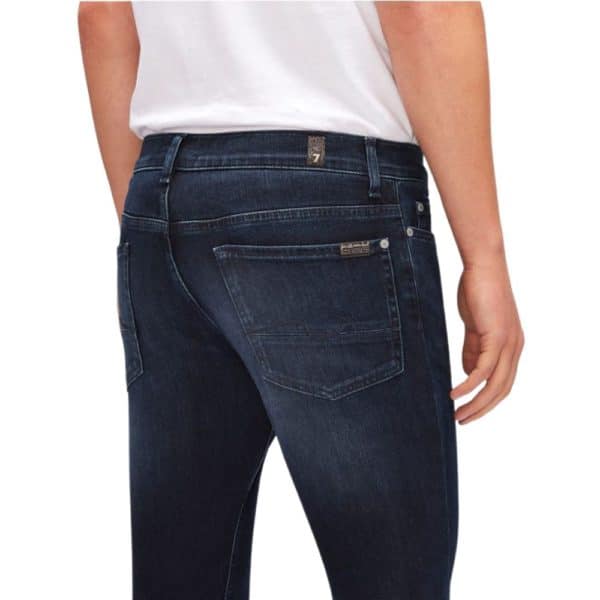Ronnie are 7 For all Mankind’s skinny fit men’s jeans with a contemporary youthful attitude. The skinny straight leg fit is streamlined and lean from top to bottom with a mid-rise, zip fly and deep set rear pockets. Luxe performance denim is created using innovative technology. Dark Blue is a resin rinsed wash that locks in the natural indigo base color. The denim is lightly brushed, highlighting the 3D whiskers and bringing out textural high and low tones.