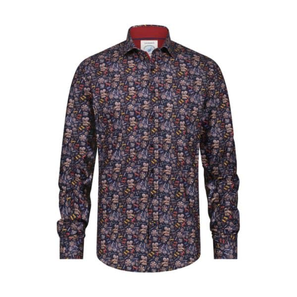 Fred’s a bit of a director himself, check out this shirt in a director and movie theme. Fred’s shirt has a modern fit and can be worn by all body types. It is made out of high quality and has a classic button fastening. On the inside of the left cuff there is ‘A fish named Fred’ embroidered in colourful letters. At the bottom of the shirt 4 different colours of buttons are placed. These 4 buttons read ‘AFNF’ which forms the initials for A fish named Fred. Hidden in the print design there is our logo fish, try to find it!