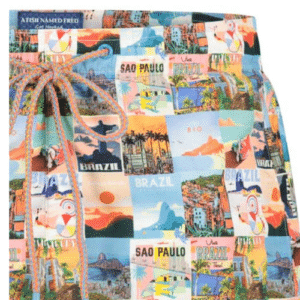 A Fish Named Fred has some of the most gifted designers and stylists in its creative team. A lot of time and attention goes into every detail of the collection from concept to finish. This Multi-coloured Brazil inspired patterned swim short features a colourful collage of Brazil’s most iconic destinations including Rio de Janeiro, Sao Paulo and Christ the Redeemer. Made from Polyester with an inner lining and multi-coloured cordstring.