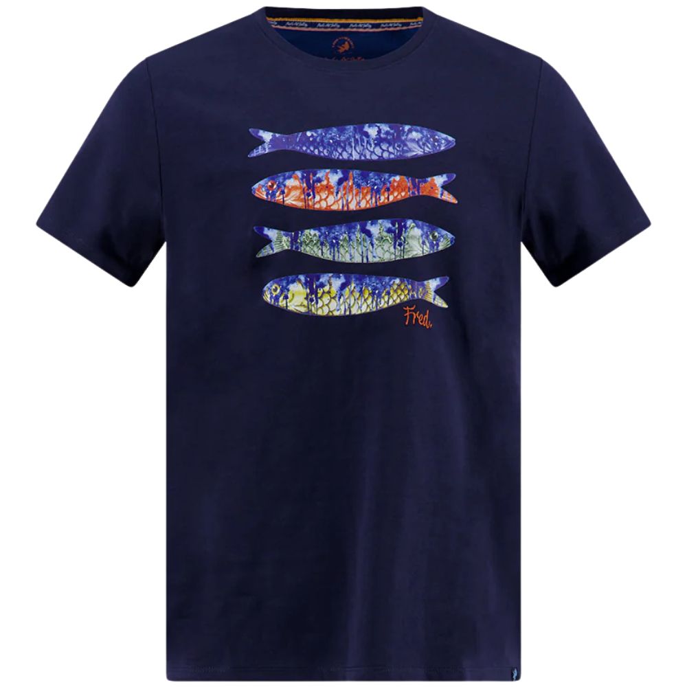 This Fish Print Navy T-shirt is anything but boring. The playful fish design on the chest reflects the quirky DNA of A fish named Fred. Made from soft cotton with a regular fit, it’s the perfect tee for a casual day with a bold touch.