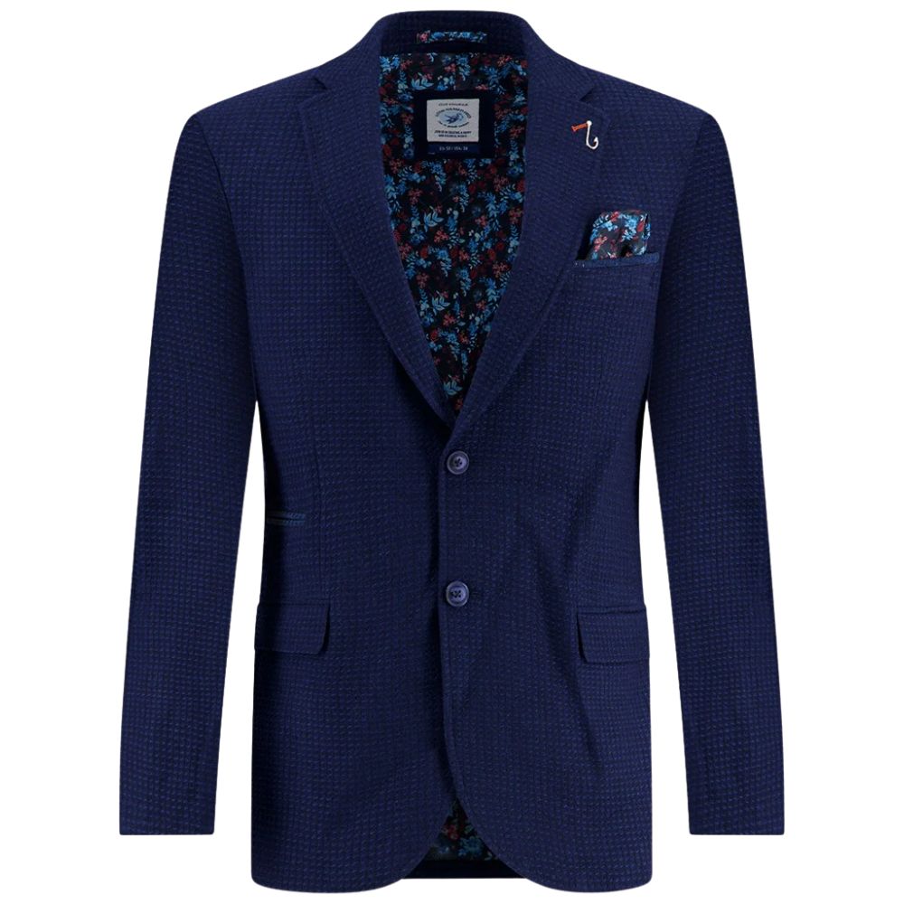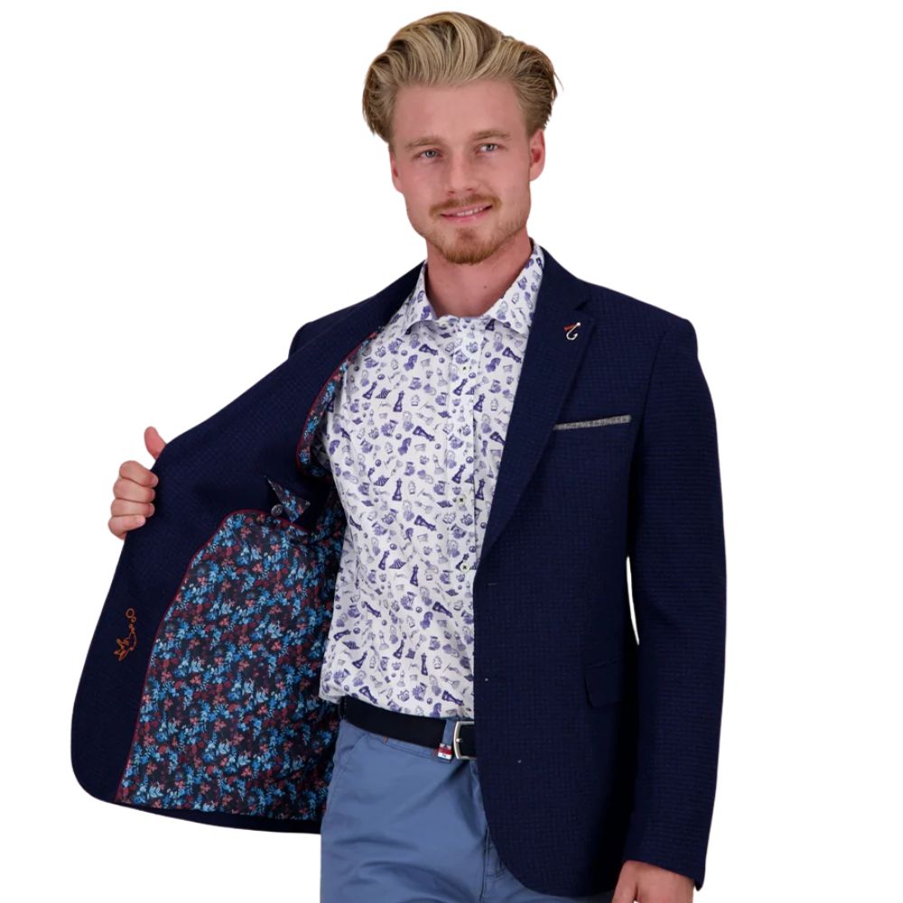 Smart and versatile, this A Fish Named Fred navy jacket features a refined small-structure fabric for a touch of texture and depth. The standout detail lies inside, with a playful floral lining that adds a signature Fred twist. Perfect for both casual and formal occasions, it’s a jacket that keeps you stylish from day to night.