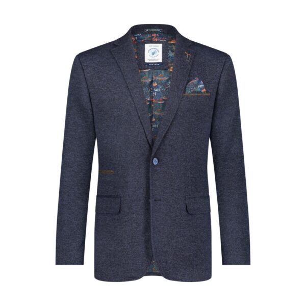 The Pique jacket from A Fish Named Fred is expertly tailored with a blend of 50% polyester, 35% viscose, 11% cotton, and 4% wool, offering a comfortable fit and durable wear. This jacket features a sophisticated pique texture on the outside with a vibrant, printed lining that adds a playful contrast when the jacket is opened. It’s designed with classic elements like a notched lapel, two-button front, and patch pockets, making it versatile for both formal and casual occasions. This stylish piece is ideal for adding a touch of personality to your professional or evening wear.