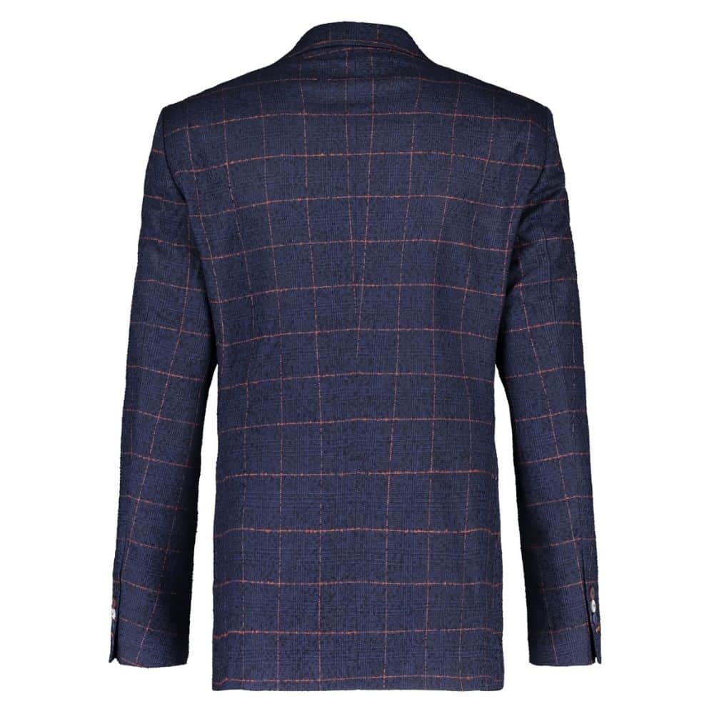 The Fish Named Fred windowpane navy jacket is fashionable and stylish. It is a single-breasted style featuring a windowpane check fabric, a two-button fastening at the front, lapels, decorative button fasteners at the bottom of the sleeves and a double split at the back. Wear this with one of our shirts and jeans or trousers for a confident, dapper look.