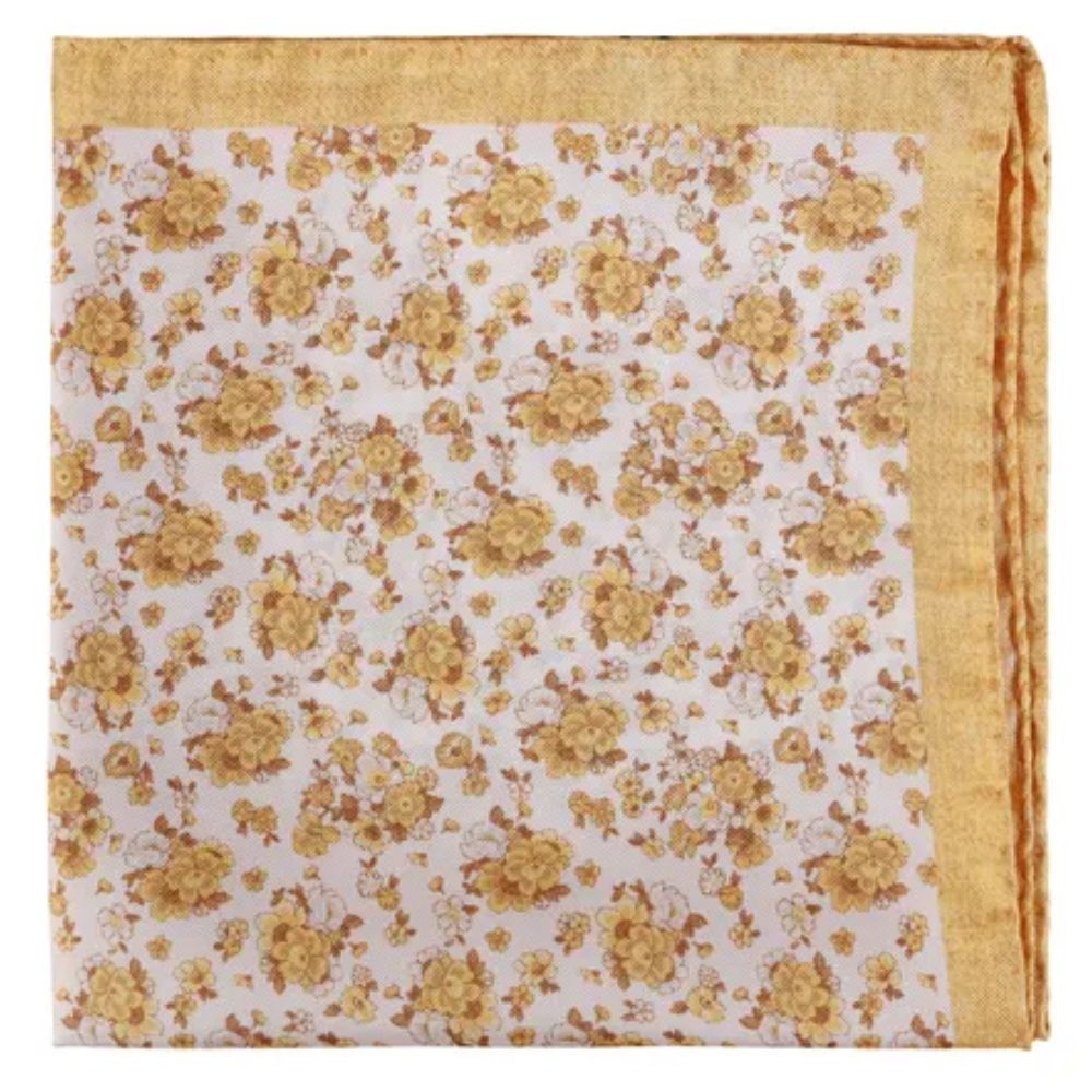 Amanda Christensen Bordered Floral Pattern Yellow Pocket Square