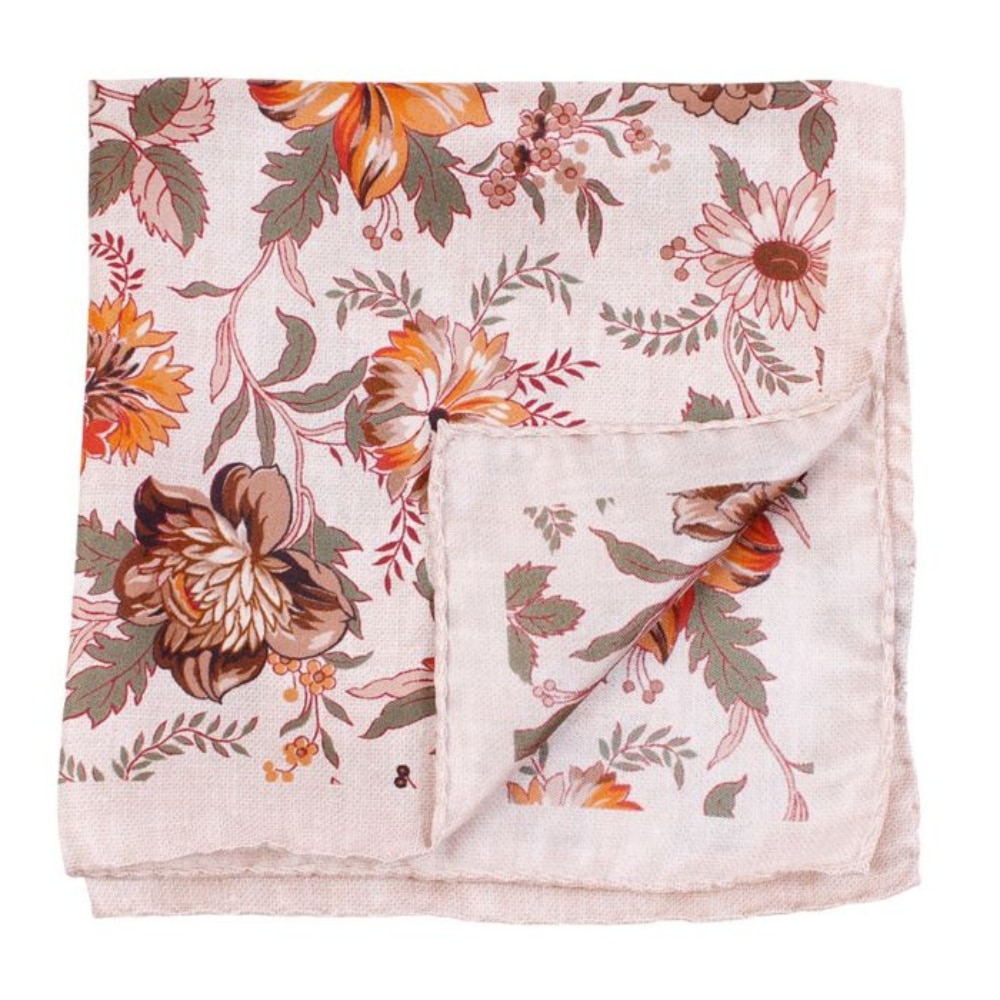 Amanda Christensen Classic printed white pocket square in large floral twill background.
