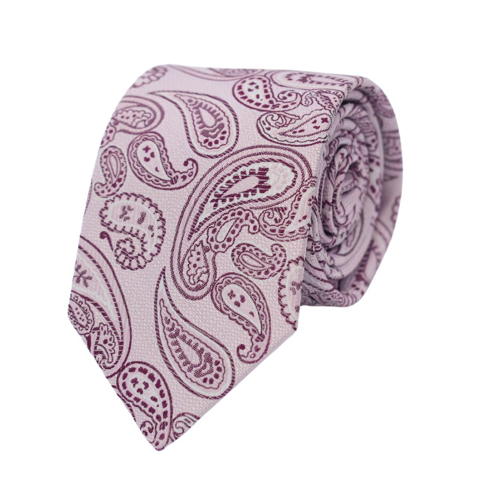 This Amanda Christensen Dusty Pink Paisley Silk Tie is crafted from pure silk, hand-finished for impeccable quality. It features a timeless paisley design on a light blue background.
