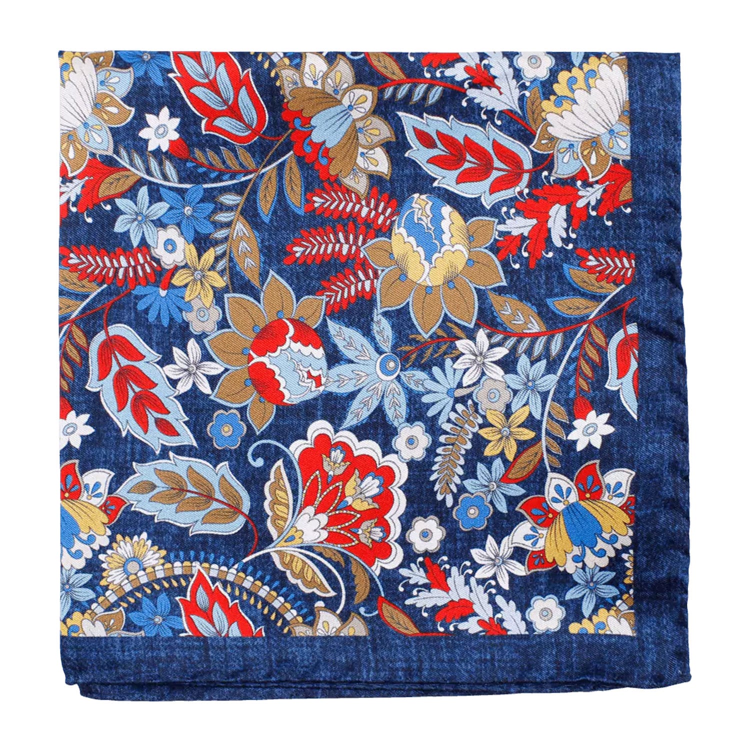 Amanda Christensen Classic silk printed navy pocket square with floral pattern.