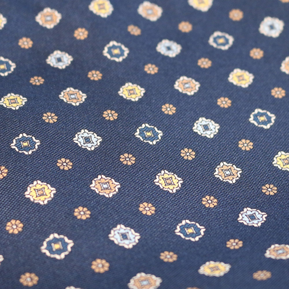 Amanda Christensen Navy Medallion and Flower Pocket Square featuring a silk fabric with a printed medallion and floral pattern. Add this pocket square to one of our suits or smart blazers for a complete and well appointed smart look.