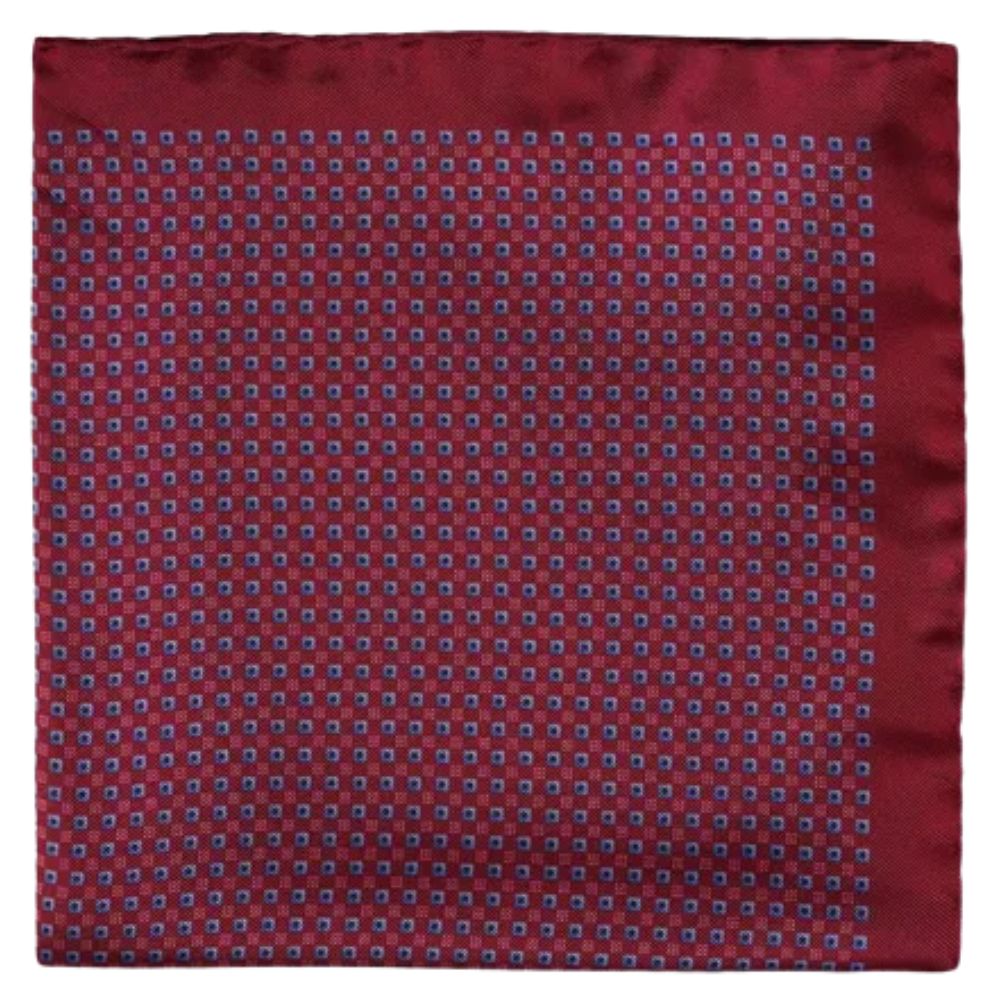 A bright and refined accessory. Featuring a subtle micro square pattern in a strong burgundy tone, this burgundy pocket square adds a touch of colour and understated elegance to any tailored outfit.