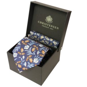 Be the first to review “Amanda Christensen Navy Flower Tie And Paisley Pocket Square”