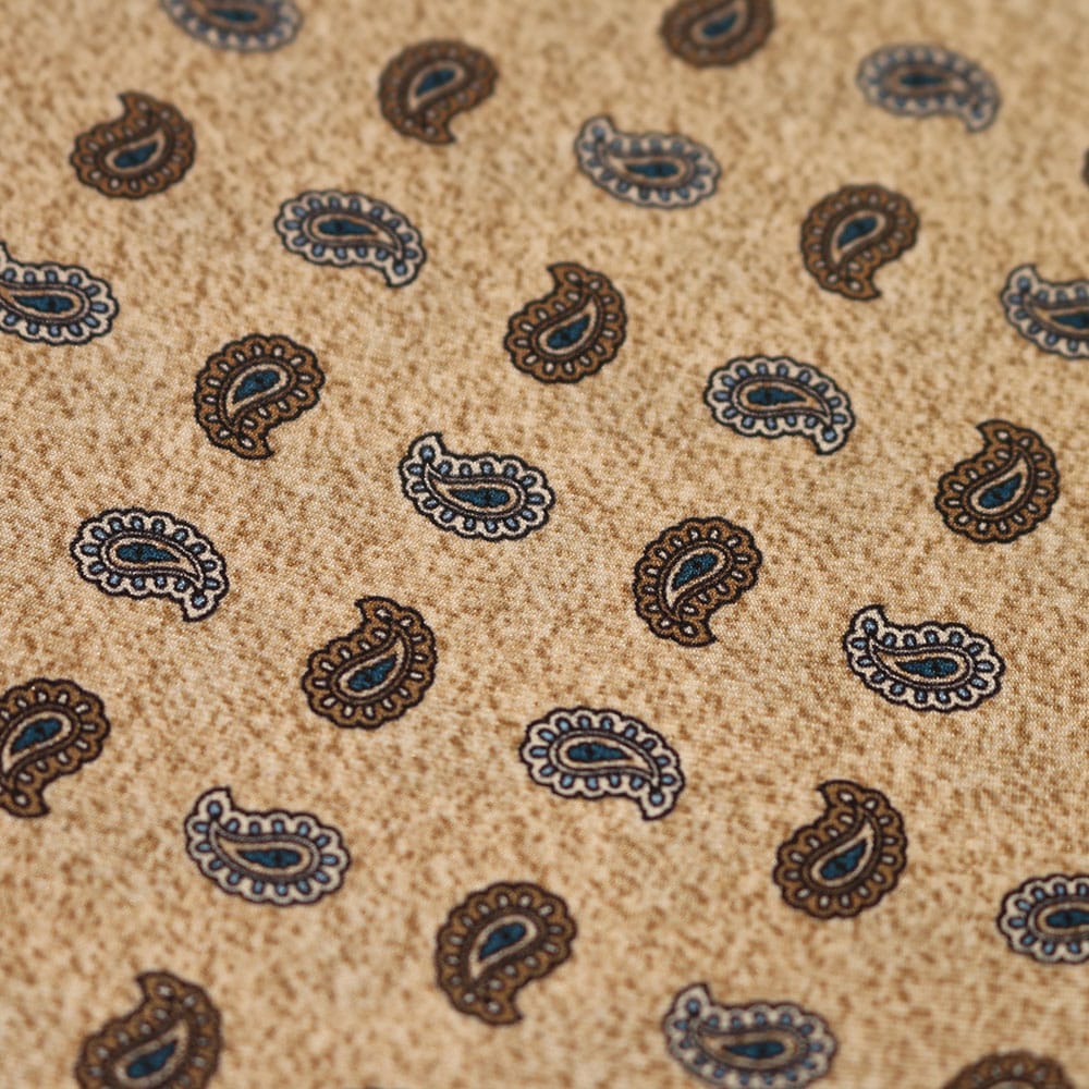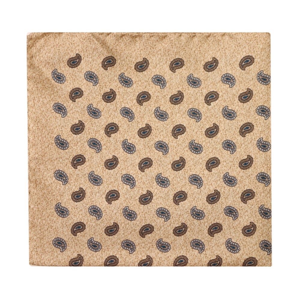 Amanda Christensen Paisley Shapes Pocket Square in cream, featuring a silk fabric with a paisley pattern print. Add this pocket square to one of our suits or smart blazers for a complete and well appointed smart look.