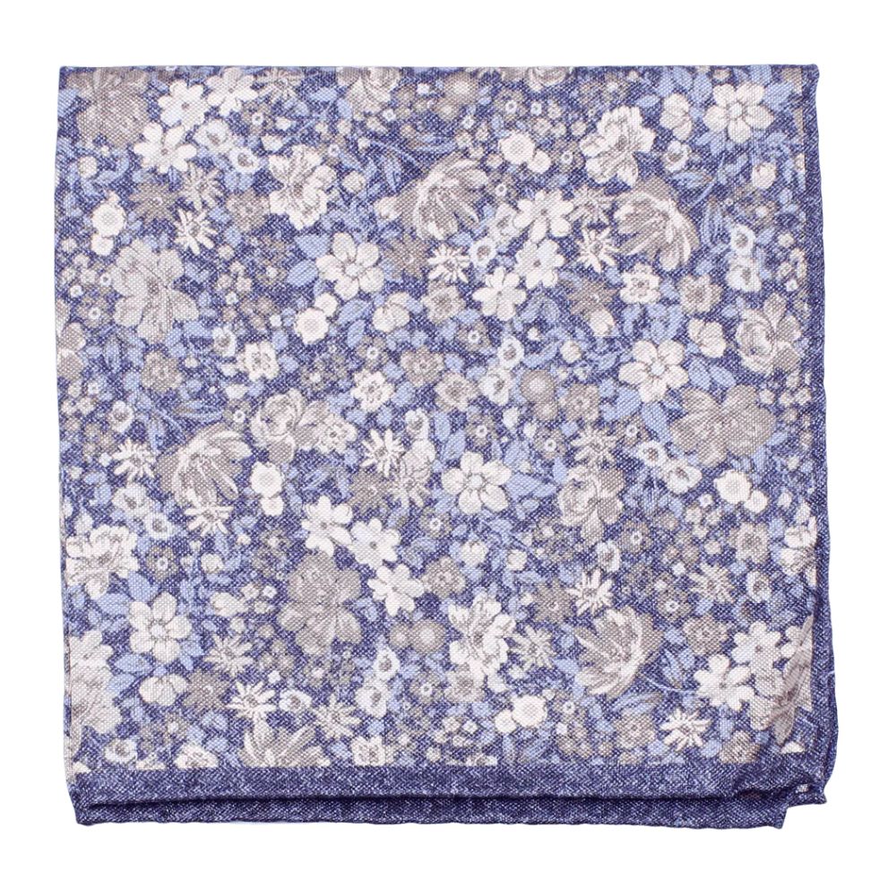 Amanda Christensen Classic Silk Light Blue Pocket Square with Floral Pattern