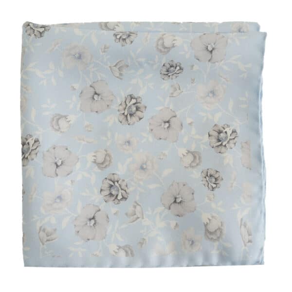 Amanda Christensen Classic silk printed light blue pocket square with flower pattern.