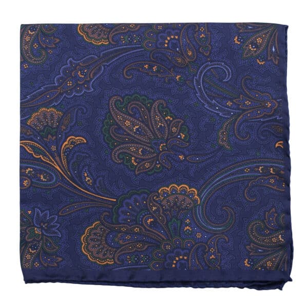 Amanda Christensen Classic silk printed navy pocket square with floral pattern.