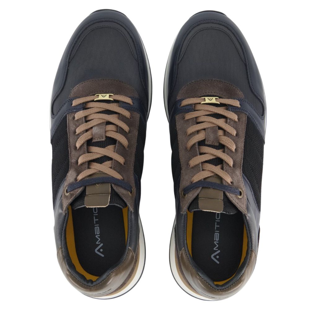 The AMBITIOUS GRIZZ trainers exude sophistication for a refined and elegant look, with their luxurious combination of leather, suede, and technical fabric. The lightweight thermoplastic sole features a tricolour detail and leather lining, adding an exclusive touch.