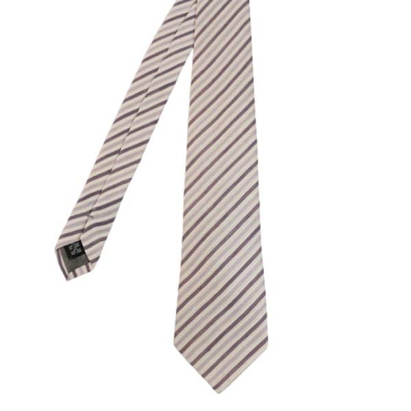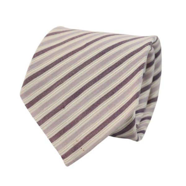 The Armani Collezioni Diagonal Stripes Lilac Tie is made in Italy from quality silk and features contrasting purple and white diagonal stripes. This tie has a keeper loop on the back for folding.