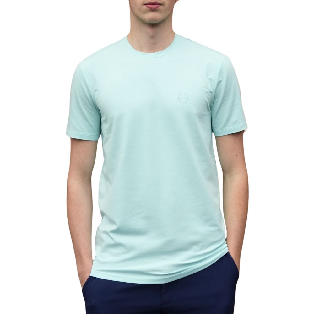 Keep it fresh and casual with this Armani Exchange pale green crew neck T-shirt. Crafted from soft, high-quality fabric, it offers a comfortable fit and a versatile style perfect for everyday wear.