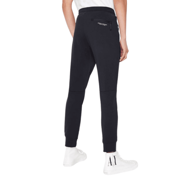 Armani Exchange Navy Jogger with drawstring closure, zip rear pocket, with the Armani Exchange logo on the pocket and drawstrings.