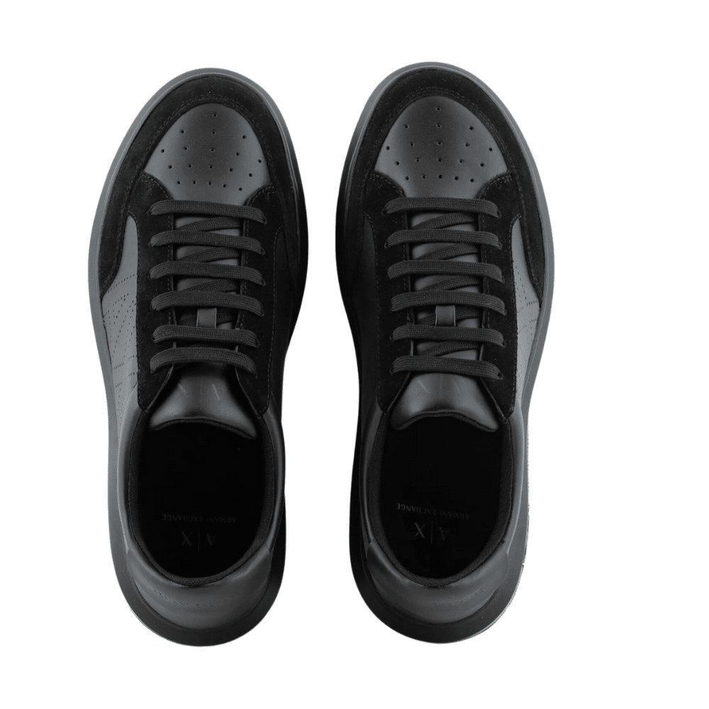 Elevate your casual footwear with these Armani Exchange black trainers, featuring premium suede inserts for added texture and style. Designed for comfort and everyday wear, they perfectly blend sporty appeal with modern sophistication.