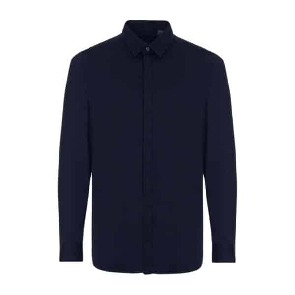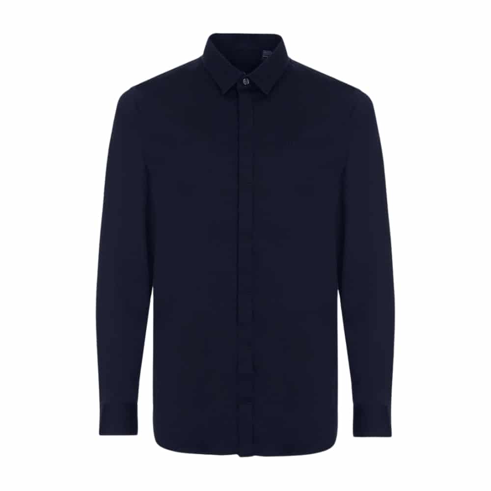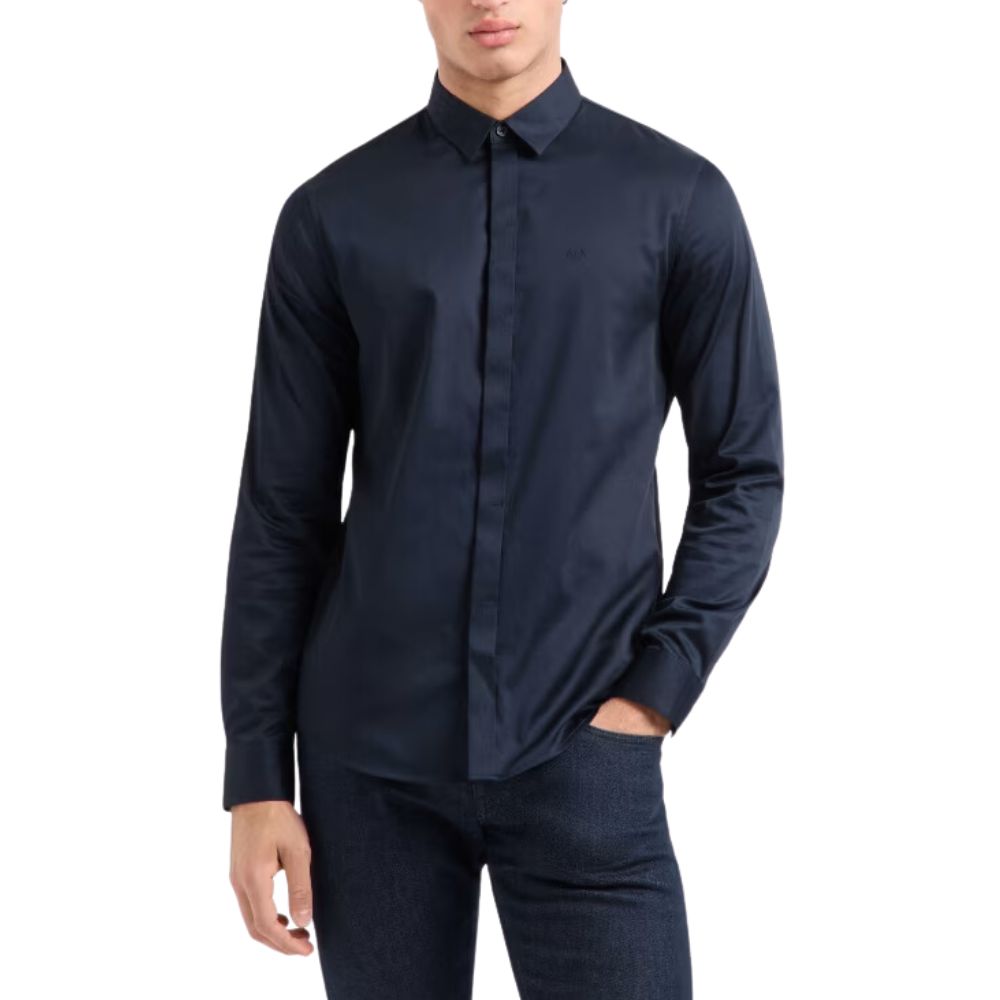 Upgrade your smart-casual wardrobe with this Armani Exchange navy shirt featuring a concealed button front for a sleek, contemporary look. Made from premium fabric, it offers a comfortable fit suitable for both professional and stylish everyday wear.