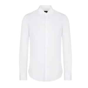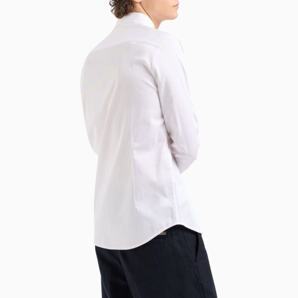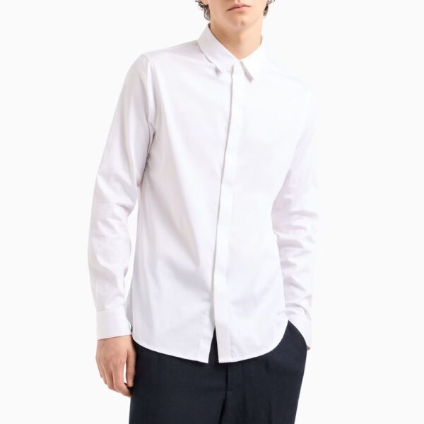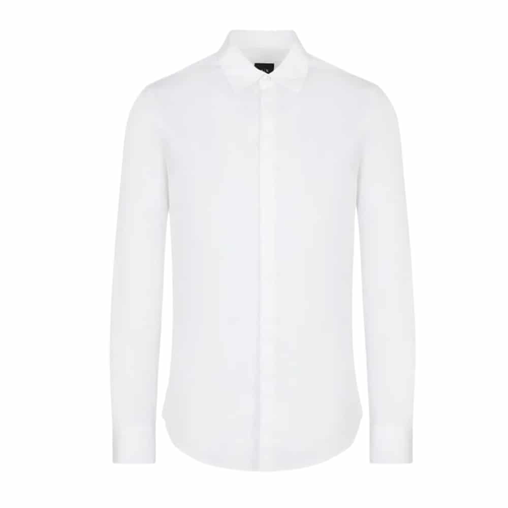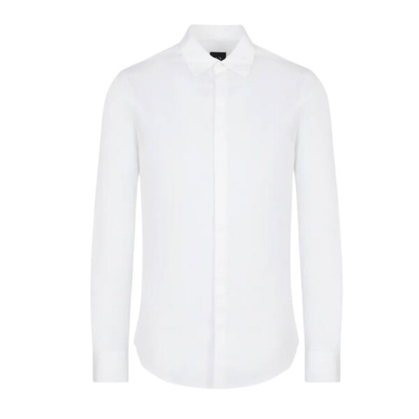 Elevate your wardrobe with this Armani Exchange white shirt featuring a concealed button front for a clean, modern finish. Crafted from high-quality fabric, it offers a comfortable fit, ideal for smart-casual and professional occasions.