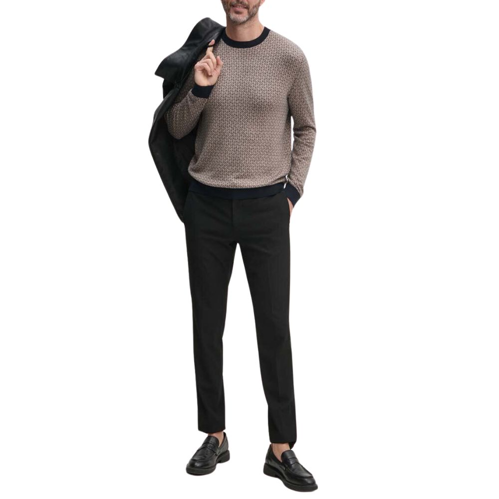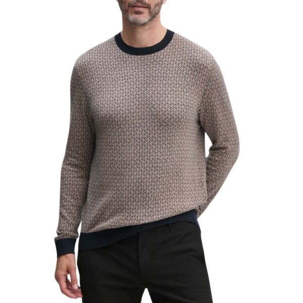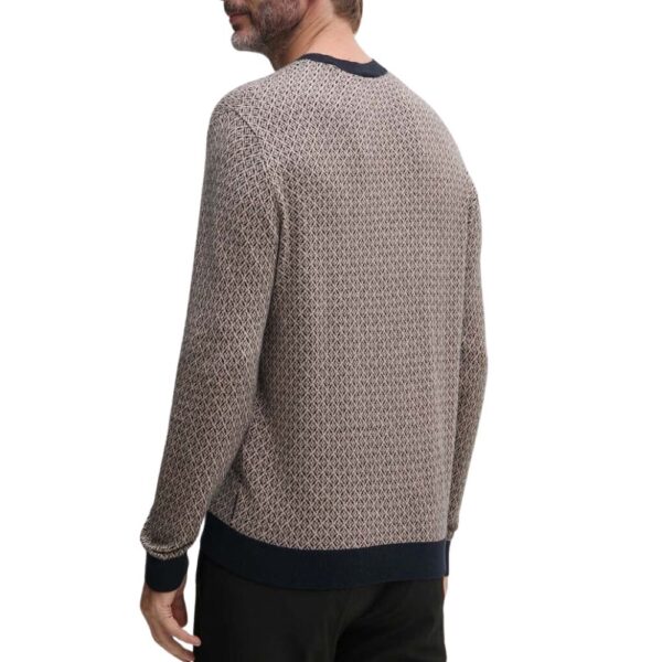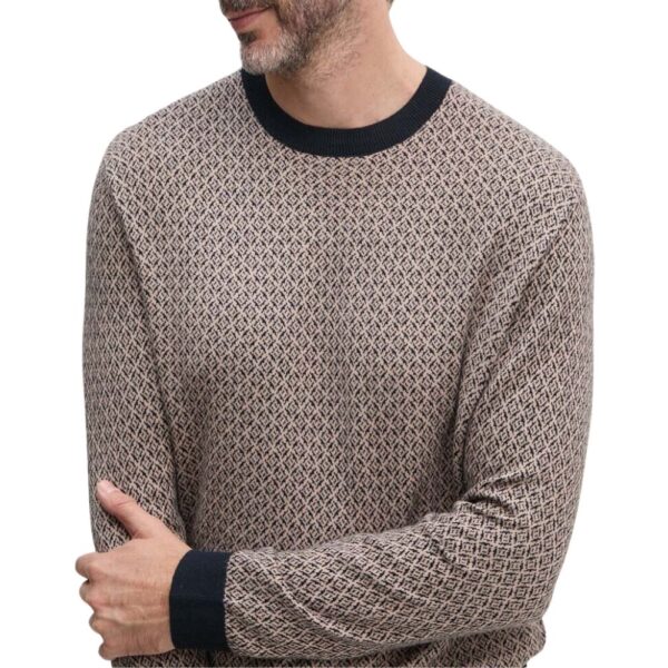 Elevate your style with this Armani Exchange brown and navy patterned crew neck jumper. Crafted from a luxurious blend of cotton and silk, it offers a soft, comfortable feel with a refined, modern look – perfect for smart-casual occasions.