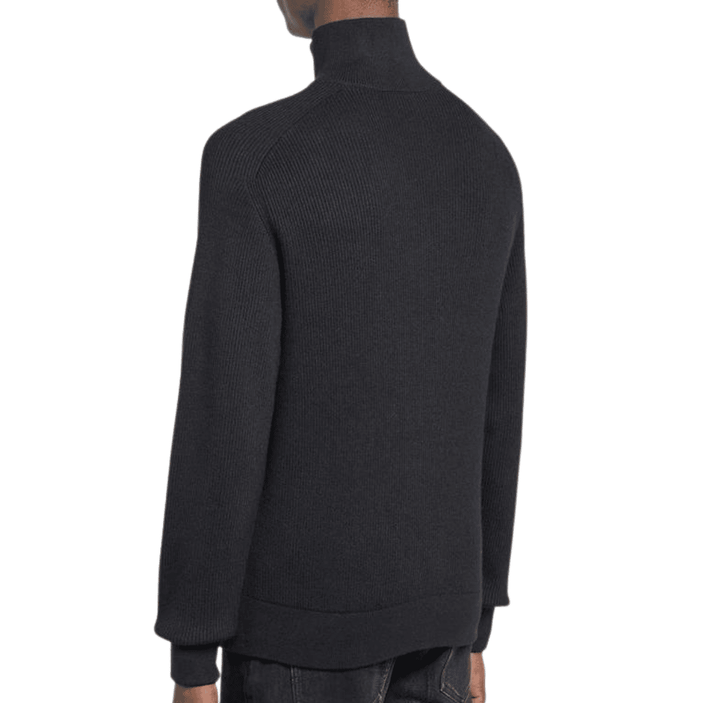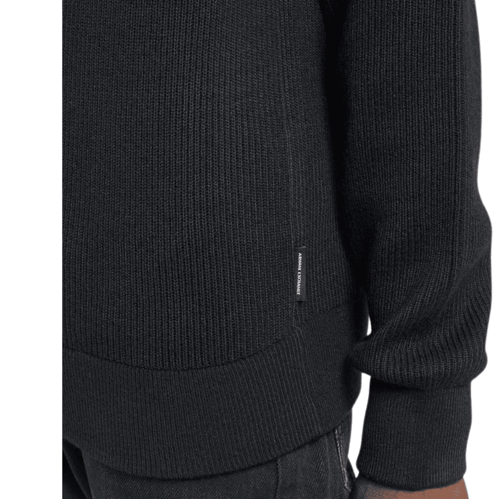 This Armani Exchange Premium Ribbed Knitted Jumper which comes in a Navy for the perfect smart casual addition to your wardrobe this season. Details: navy colourway, stand up collar with half zip fasten, ribbed cuffs and hem, regular fit and branded tab to the seam completes.