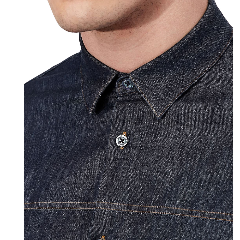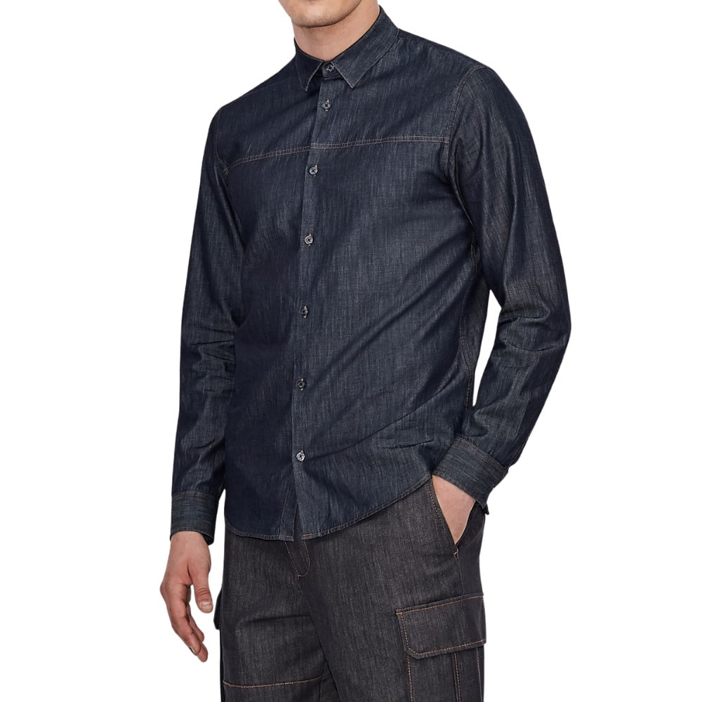 This Armani Exchange Indigo Denim Shirt has a classic neckline, and long sleeves with buttoned cuffs.