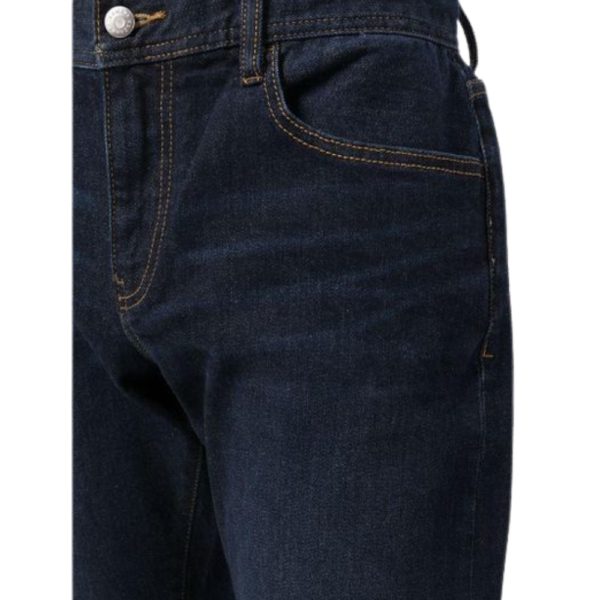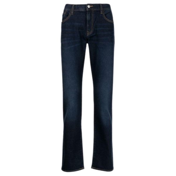 Armani Exchange Dark Wash Regular fit Jeans with the traditional Five belt loops on the waistband, and a large Armani Exchange logo patch on the reverse in black leather. Classic five pocket design with two pockets on the hips and a small coin pocket within the right pocket and featuring the AX logo on the rear pocket of the jeans.