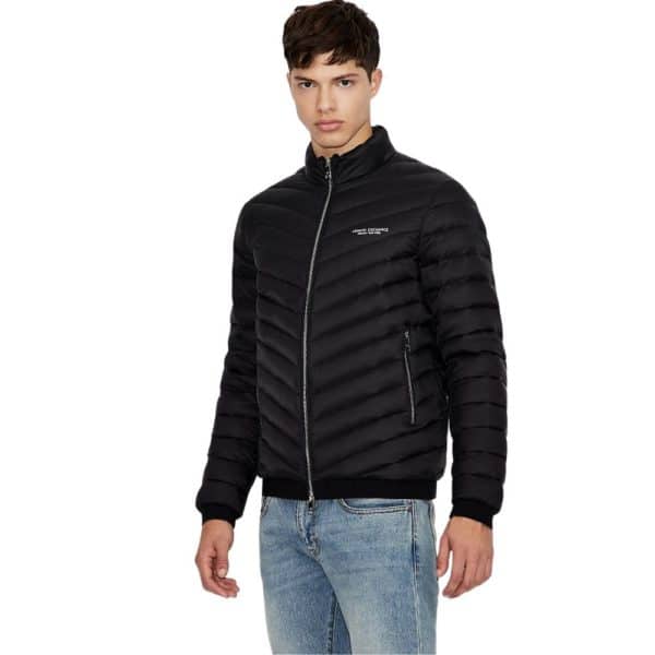 Keep warm with this Armani Exchange nylon down puffer jacket in black. Designed from down feather for extra insulation, full zip closure, elasticated sleeve and hemline with imprinted logo for that comfortable fit.