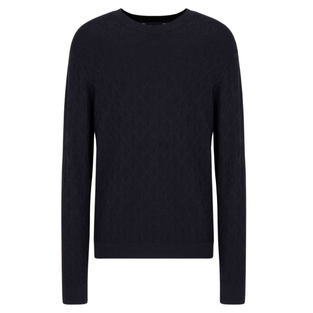 A versatile wardrobe essential, this Armani Exchange navy crew neck jumper is crafted from soft, comfortable fabric. Its clean design and classic fit make it perfect for layering or wearing on its own for a refined, casual look.