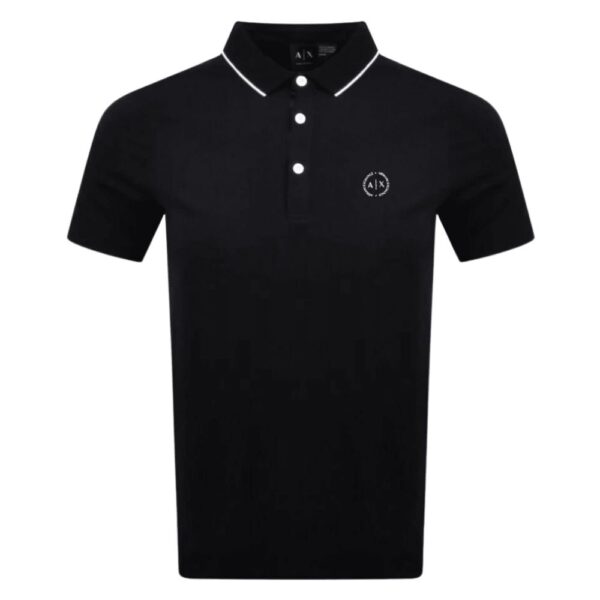 The Armani Exchange black polo shirt, crafted from stretch cotton jersey, offers a sleek and versatile look – perfect for casual wear and effortlessly stylish with jeans or chinos.