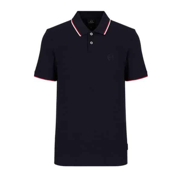 The Armani Exchange navy polo shirt with contrasting detailing is perfect for casual wear and paired with jeans or chinos.