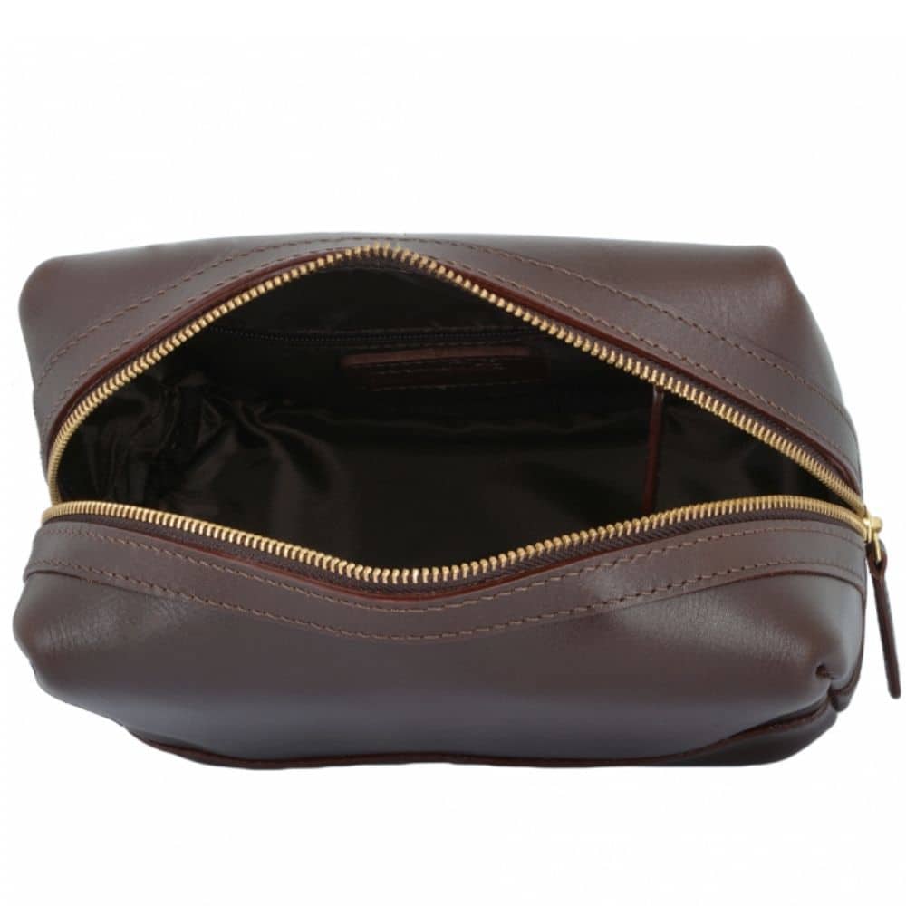 Ashwood Brown Leather Washbag, part of their heritage range of natural high grade buff dakota leather. Inner zip pocket with a double ended outer zip.