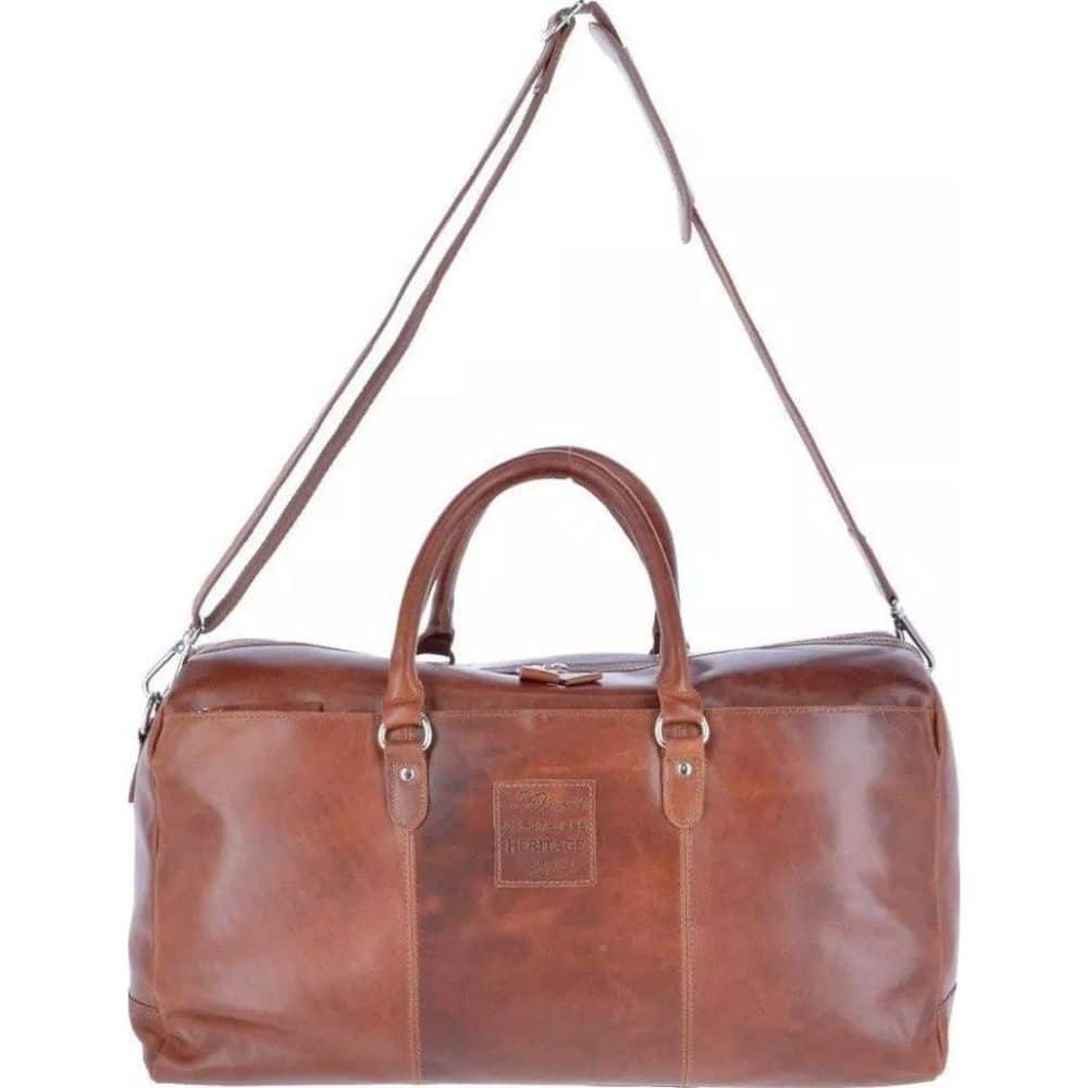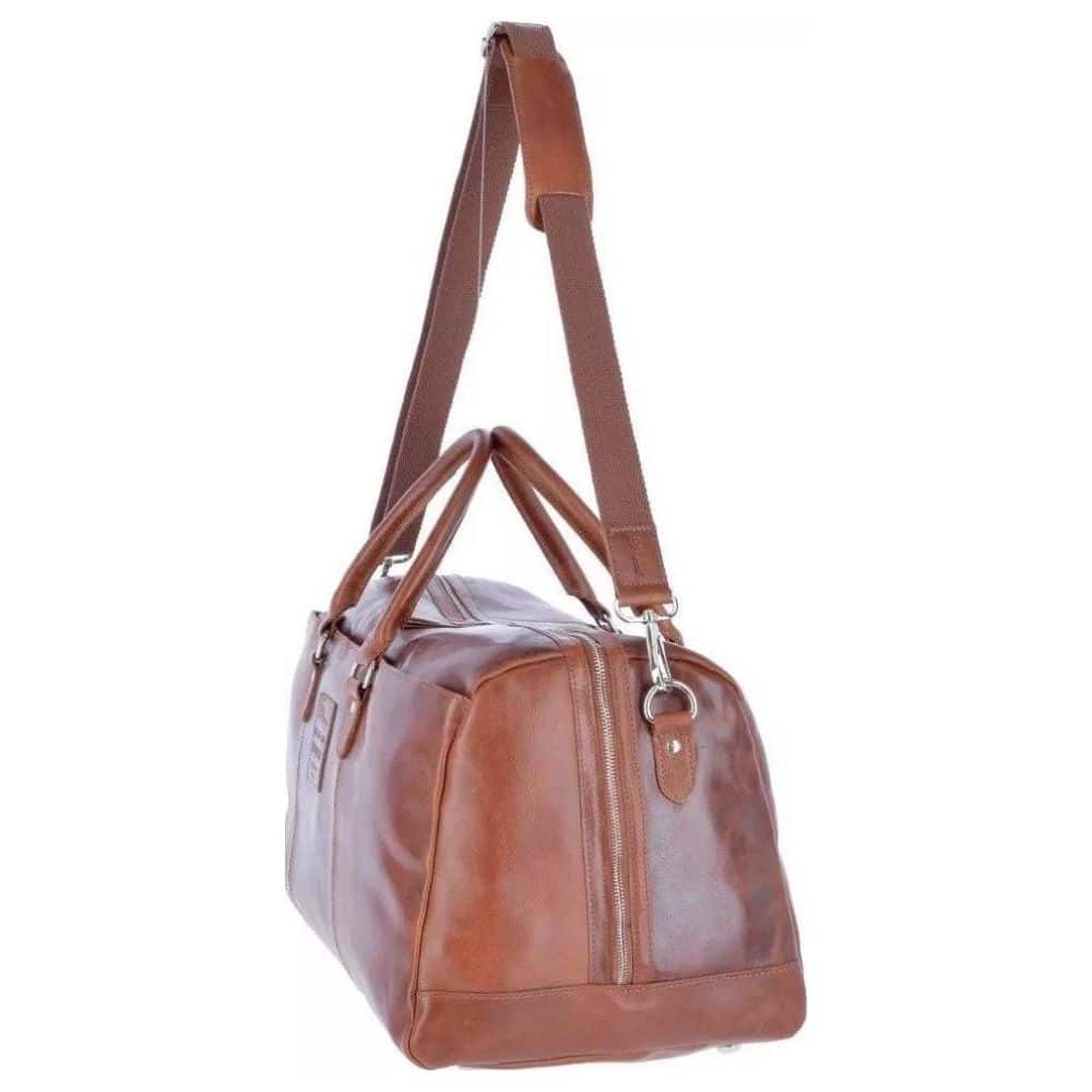 Ashwood’s Chestnut Leather holdall is a part of their heritage range of natural high grade buff Dakota leather has 5 metal legs, two outer pockets and a large inner compartment with leather pockets suitable for carry on airline luggage.