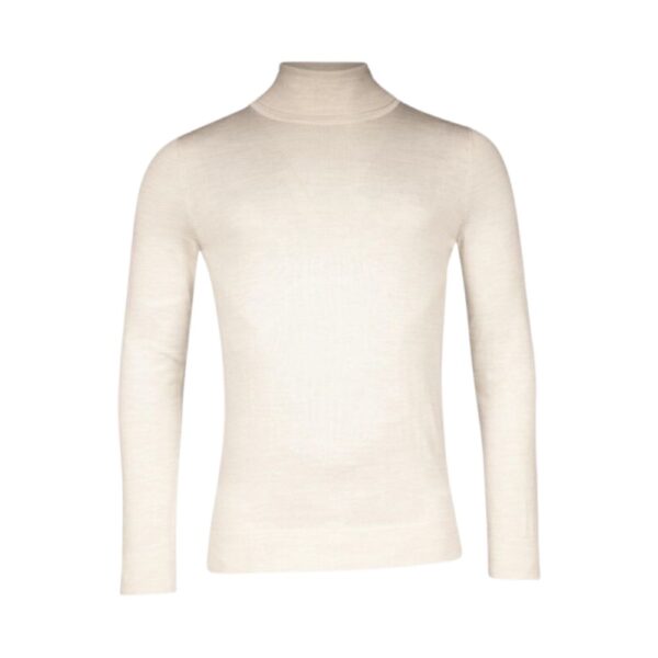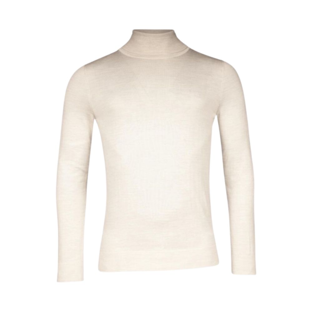 Baileys merino off-white wool knitted roll neck jumper is luxuriously warm and breathable, thanks to its super soft fine merino wool 24 gauge construction.