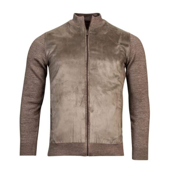 An effortless staple for casual and formal wear, this hybrid cardigan features a suede fabric on the front for the perfect sleek insulation on colder days. Match with blue jeans and white trainers to compete the look.
