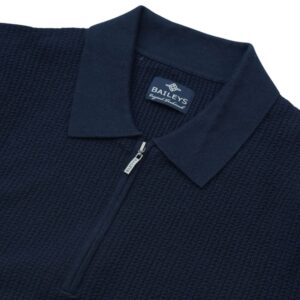 The Baileys navy polo shirt with a half-zip collar is the perfect blend of style and functionality. Crafted from a luxurious fabric blend, this jumper offers exceptional comfort and a soft touch. The half-zip design allows for versatile styling, whether layered over a shirt or worn on its own.