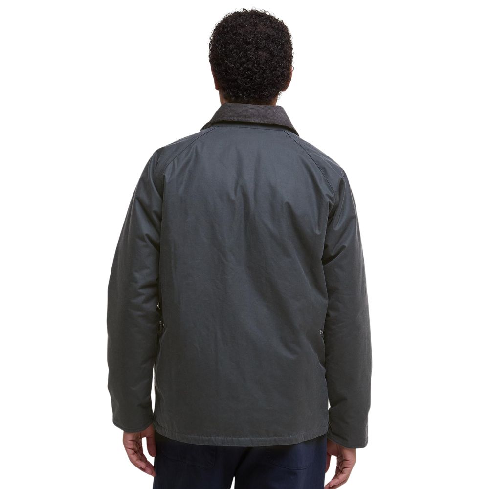 The Barbour Ambleside Waxed Jacket in Grey combines traditional craftsmanship with modern practicality. Made from durable waxed cotton, it provides reliable weather protection while maintaining a refined, timeless look. Featuring a corduroy collar, spacious pockets, and signature Barbour detailing, this jacket is perfect for both countryside walks and city outings. A versatile outerwear staple built for comfort and style.