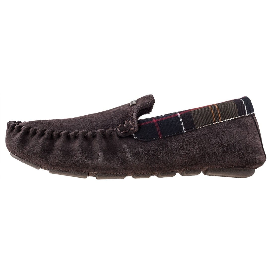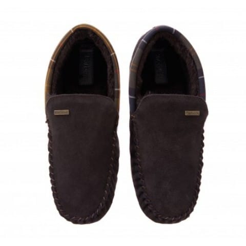This Barbour Monty Brown Suede moccasin-style slippers teams a monochrome tartan upper with a cosy faux-shearling lining that offers luxurious warmth. Set on a hard-wearing rubber sole, it’s finished with a metal Barbour badge to the outer front.