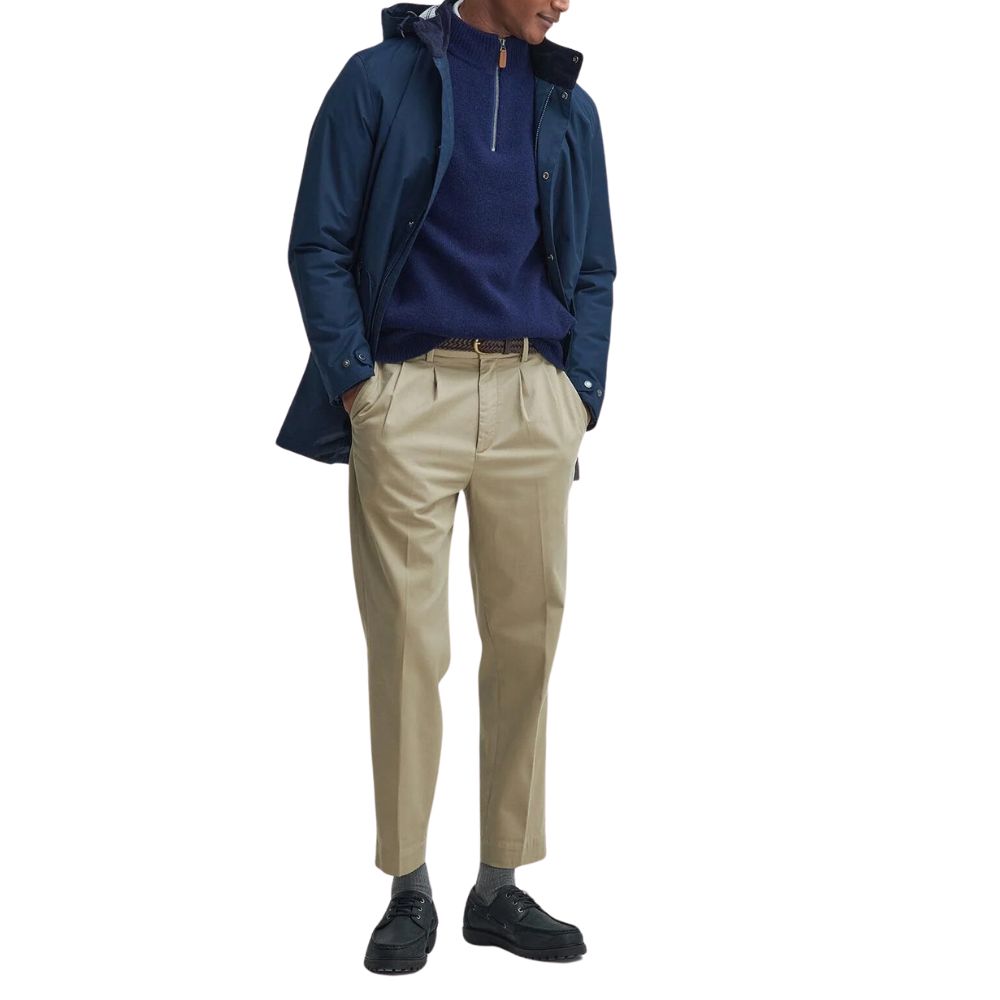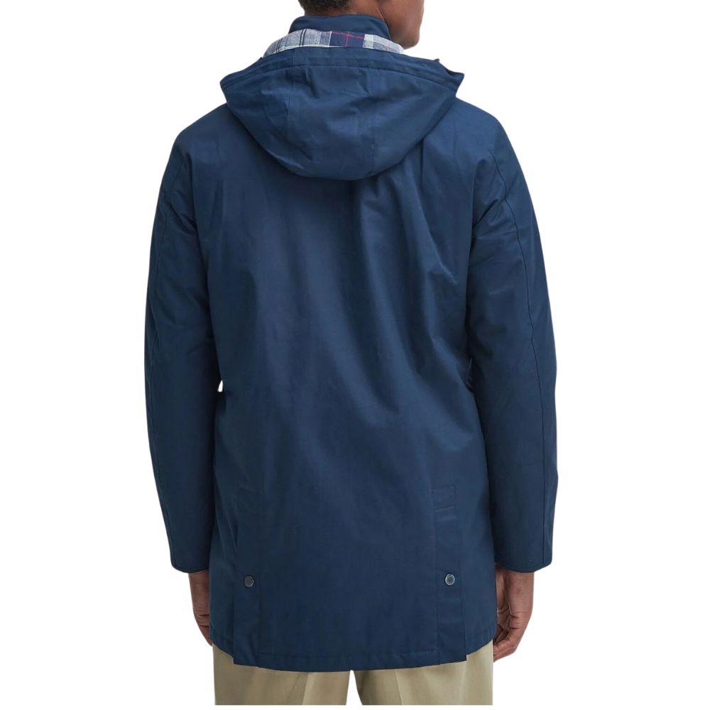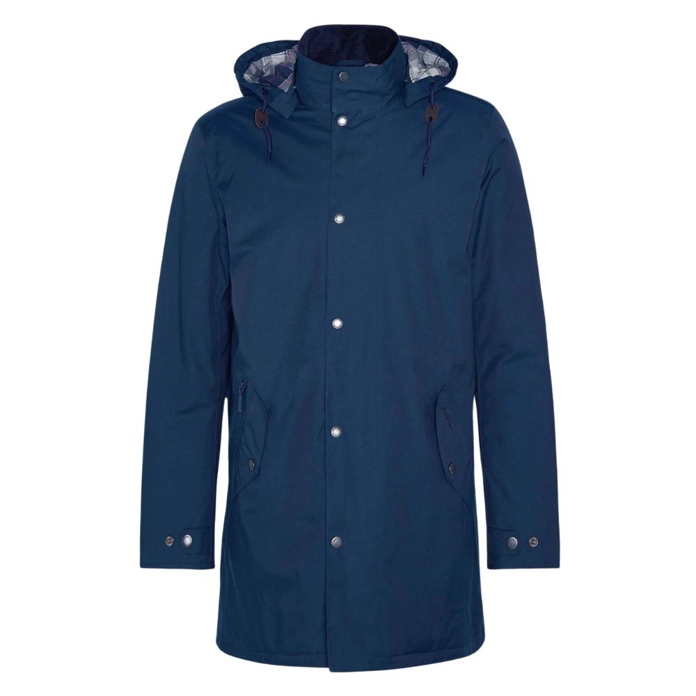 This Barbour raincoat made from a lightweight waterproof fabric to keep any summer showers away, this Navy raincoat is perfect to throw on over any casual look. Cut to a mid length with twin welt pockets, it’s finished with a tartan and mesh lining to the interior.