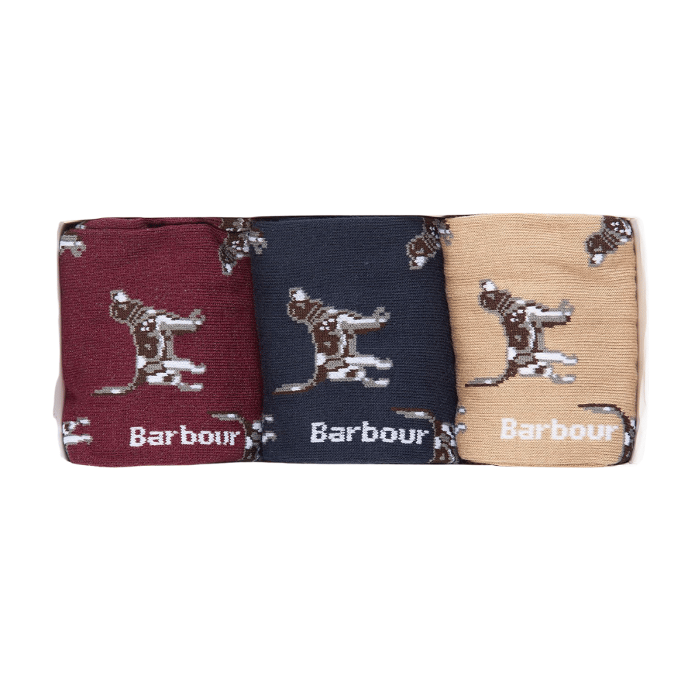 The perfect gift for any dog lover, the Barbour Pointer Dog sock gift set offers three premium cotton-rich socks in a variety of colours, each patterned with a repeating dog motif throughout. This charming set is presented in a Barbour branded box for easy gifting.