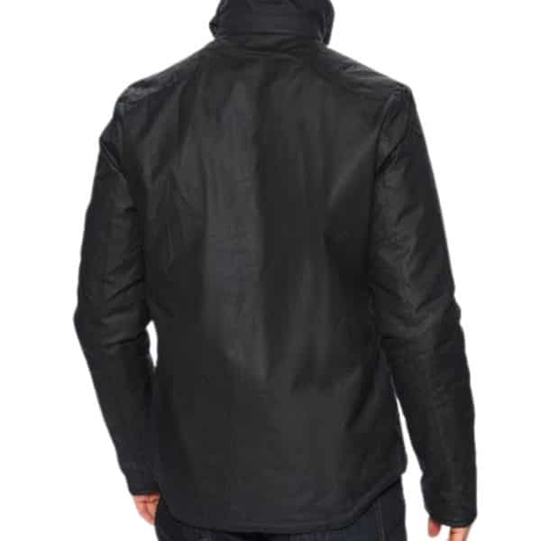 The Barbour Reelin Navy Wax Jacket is crafted from waxed cotton and features a quilted lining. Styled with shoulder patches, a cord collar and zipped handwarmer pockets. The jacket is finished with embroidered branding to the left pocket flap.