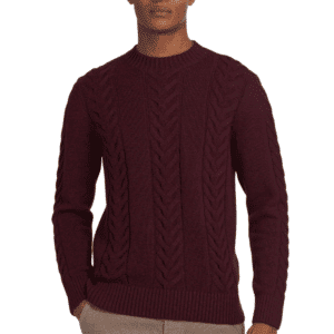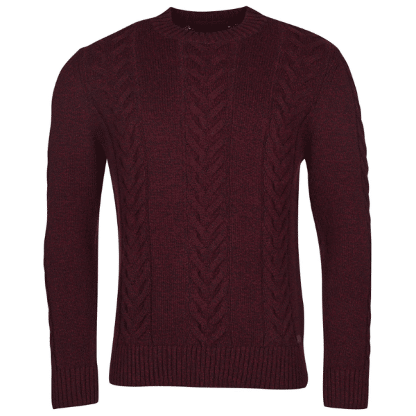 The Barbour cable knit Ruby Marl crew neck jumper showcases rib detailing to the collar, cuffs and hem. Perfect for a warm yet stylish layer, this knit is finished with a Barbour tan leather label to the wearer’s left side hem.