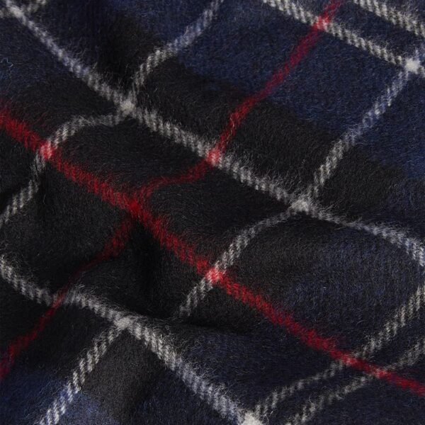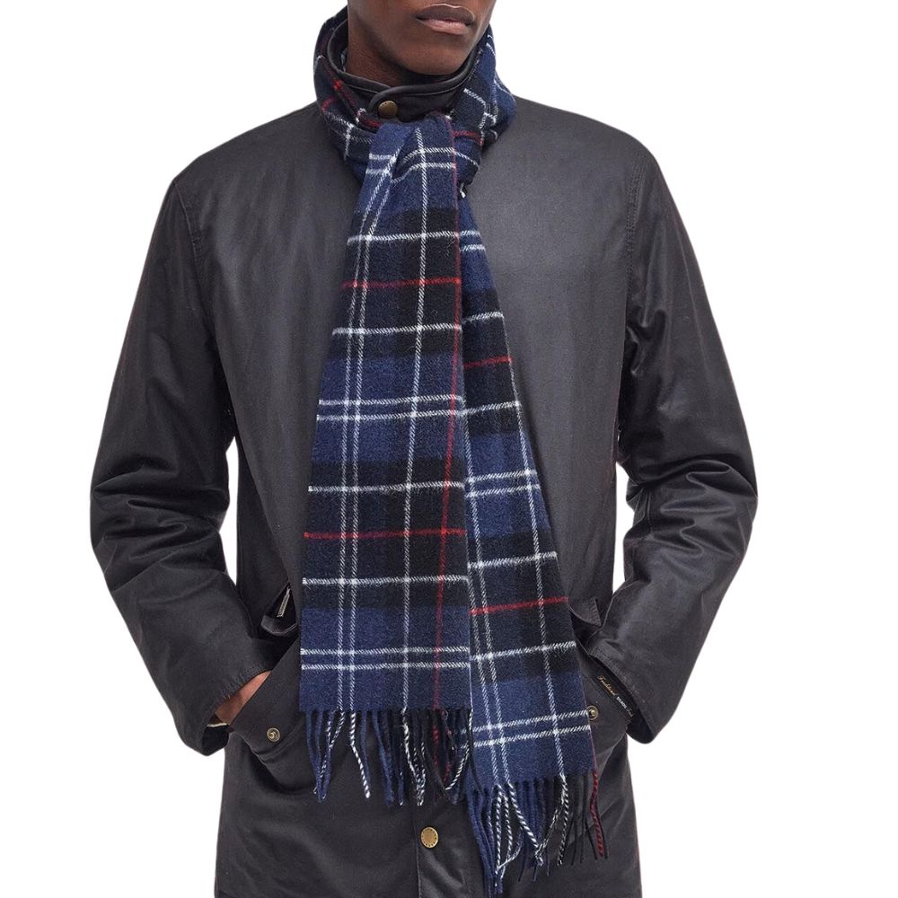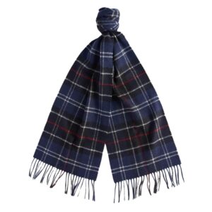 The Barbour Navy scarf is crafted from 100% Lambswool for that warm and snug feeling. Perfect for adding warmth and comfort on those cold days. The Barbour logo is stitched up from the fringe.