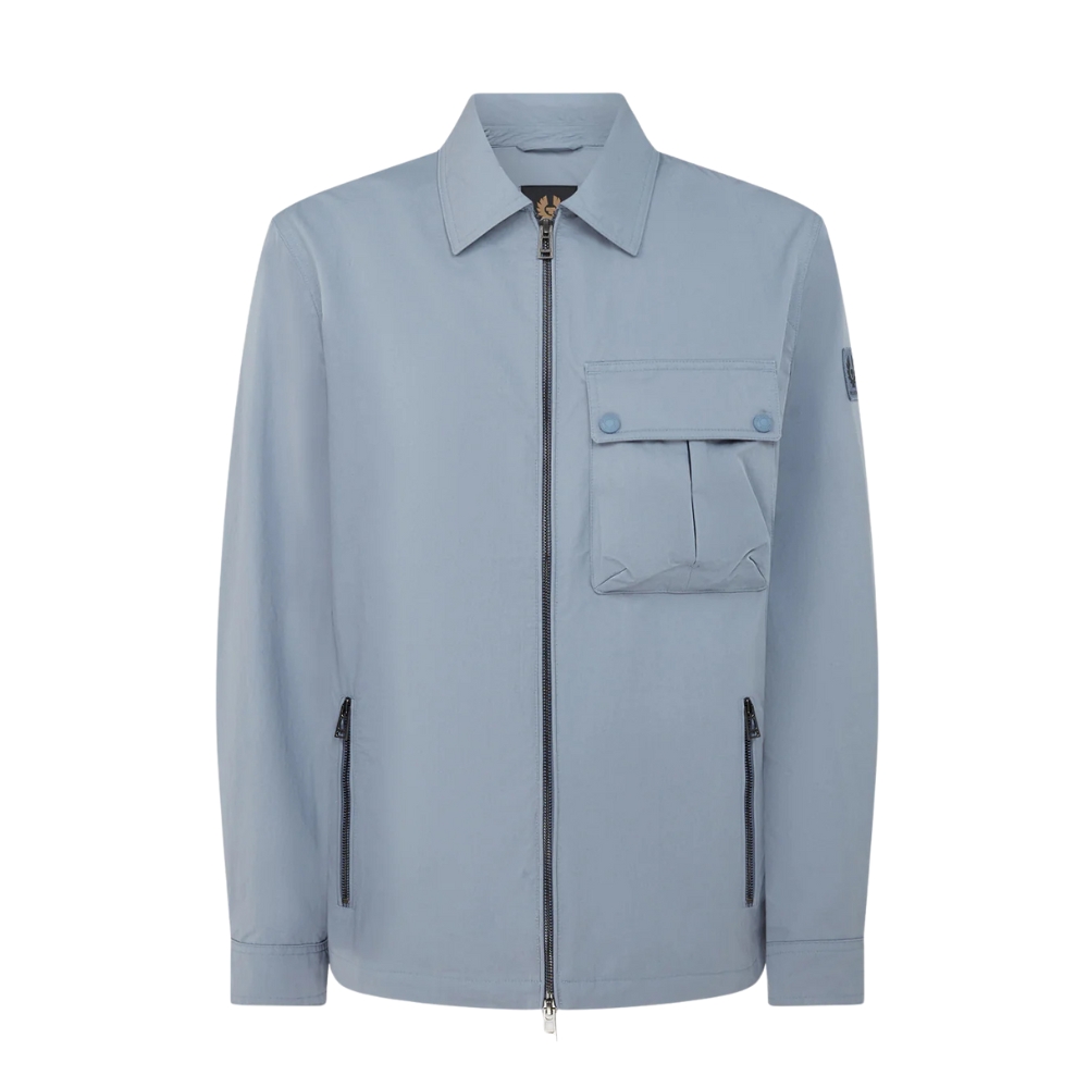 The Drome overshirt in Blue Flint is a versatile piece with pleated Belstaff utility pockets. It’s made from cotton nylon gabardine, combining cotton yarn with strong nylon filaments to achieve softness and smartness. The water-repellent finish is perfect for inclement weather.