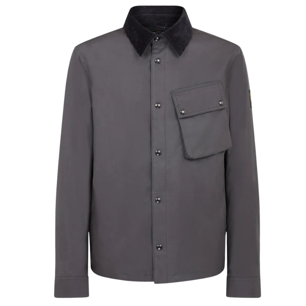 The Belstaff Ground Jacket in Tornado Grey blends utility and style with its distinctive corduroy collar. Crafted from 6oz British Millerain waxed cotton, it provides water and wind resistant protection, while the cotton twill lining in Belstaff’s signature check ensures comfort. Details include a moto-inspired angled chest pocket, snap-adjustable cuffs, and antique brass hardware. Equally suited to countryside walks or layered over tailoring for the commute, this jacket is a versatile modern classic.