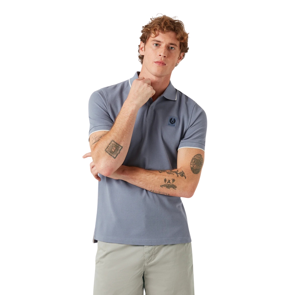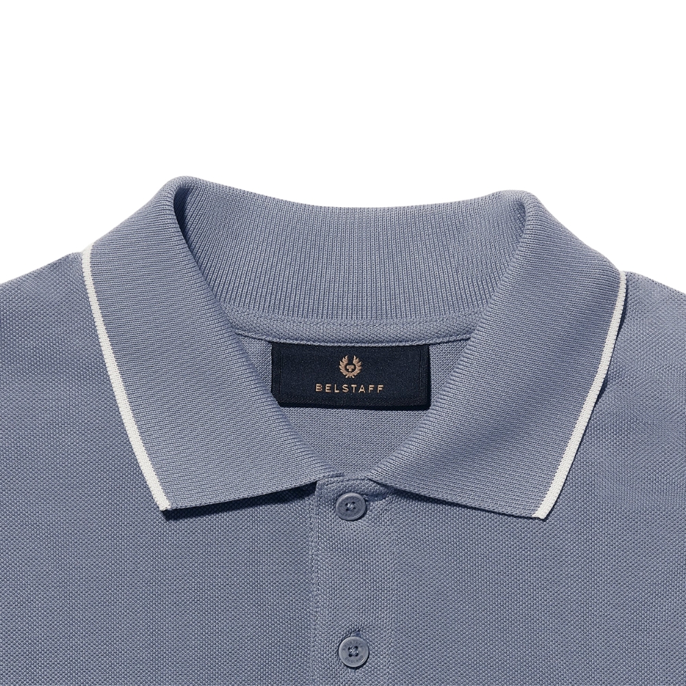 The Tipped Polo in Blue Flint is a sporty collared top in finely textured cotton piqué with contrast edges. A wardrobe essential, season after season.